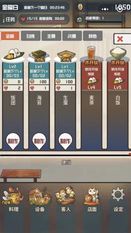 小店里的新料理是通过不断制作已学会料理中悟出来的,比如饭团制作到一定等级就开放白米饭,白米饭制作一定等级就自动学会咖喱饭。所以想要学习某种料理就需要查看它的前置料理是什么,勤加练习即可。